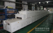 2、外形尺寸(約):總長24000mm*總高1690mm*總寬1220mm,地面到網(wǎng)帶的高度為850mm,爐體內(nèi)進(jìn)料高度為150mm;烘干部分總長14000mm,分7段獨(dú)立控溫(每段4個(gè)測(cè)溫?zé)犭娕迹慷?000mm。冷卻段長4000mm,UV預(yù)留區(qū)長2000mm,前后緩沖區(qū)各長500mm,進(jìn)出料部分長1500mm, 爐體前后裝有急停開關(guān)。